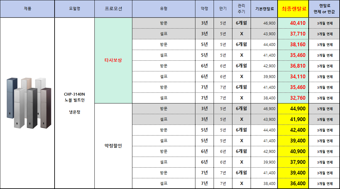 | 렌탈료 | 월 36,400원 (7년(7년의무)) |
